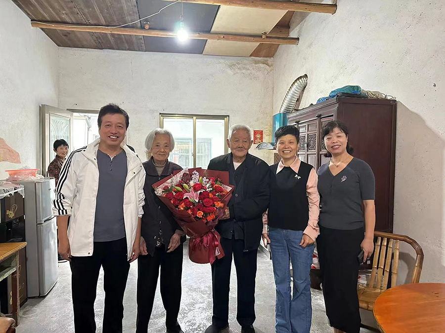 重阳节来临之际,理事长周干尔、秘书长黄建岳分别带队看望慰问长寿家庭老人代表,亲切慰问并送上鲜花和慰问金。