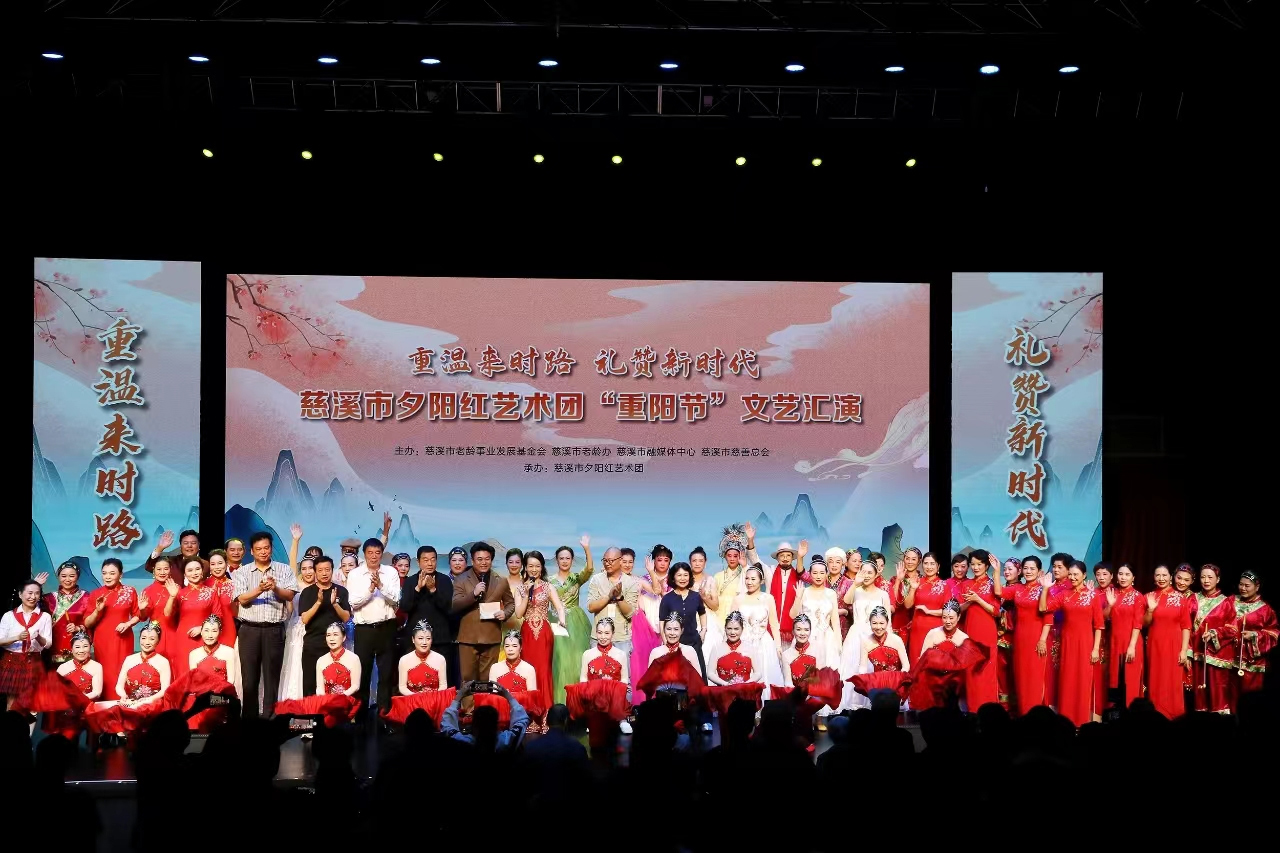 10月9日下午,由慈溪市老龄事业发展基金会、慈溪市老龄办、慈溪市融媒体中心、慈溪市慈善总会主办的“重温来时路 礼赞新时代 慈溪市夕阳红艺术团‘重阳节’文艺汇演”在慈溪大剧院和“微赞”平台线上直播进行,吸引了近万观众线上线下同步观看。